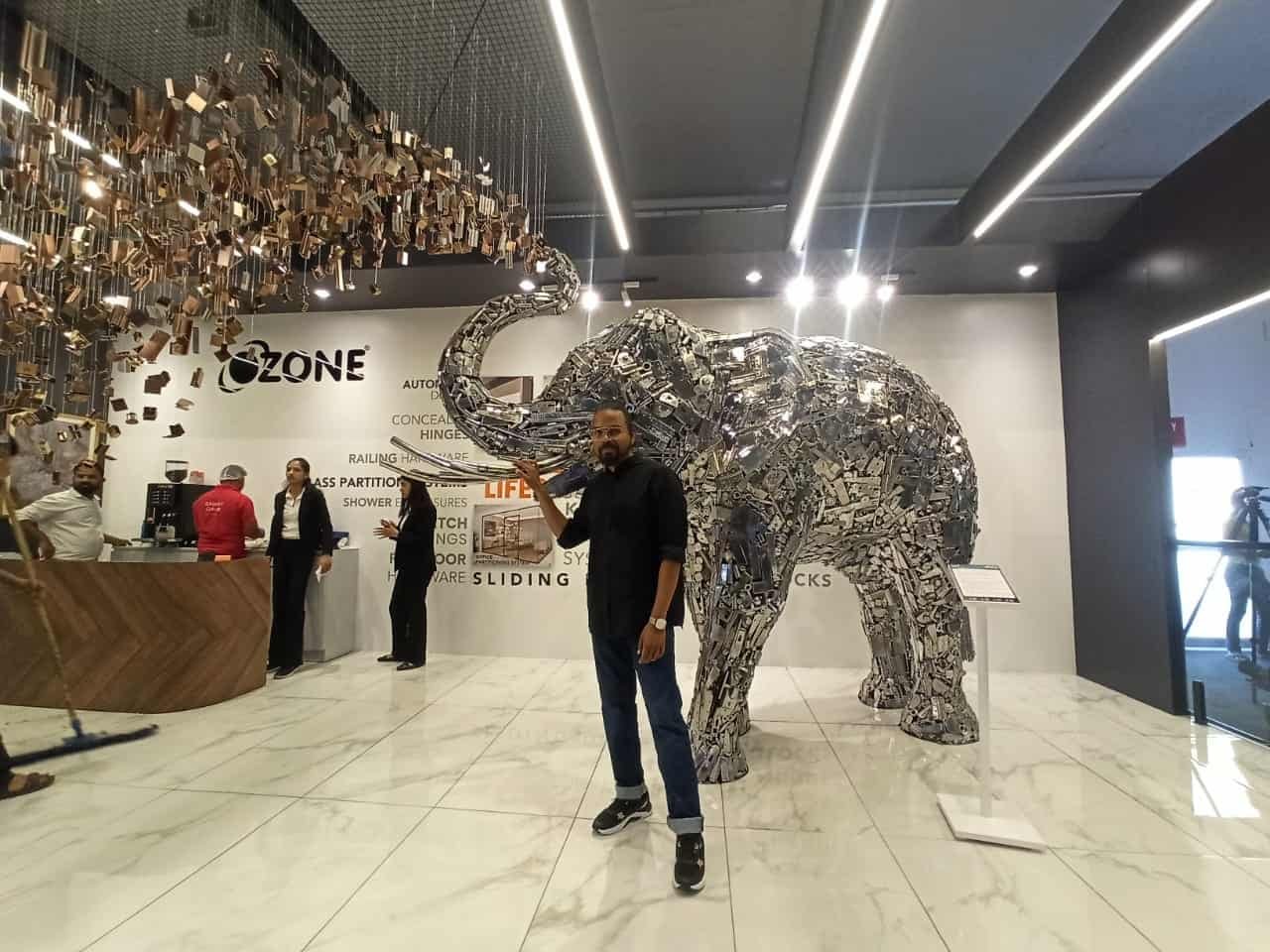 Design and execution of an interactive sculptural installation for India Design ID, showcasing Ozone Hardware products through a dynamic and functional sculptural form.